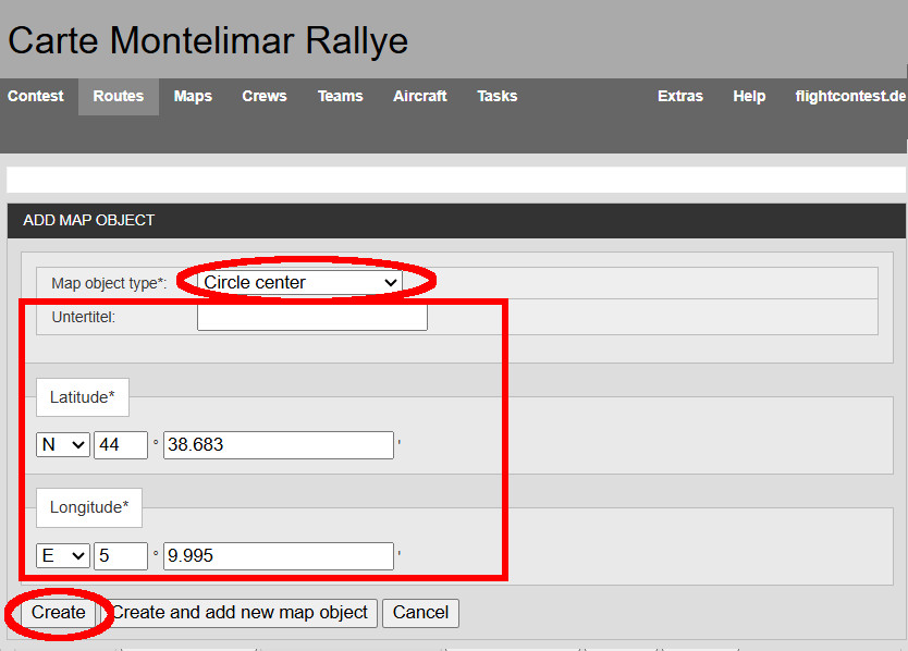 Saisie des coordonnées géographiques du centre de cercle