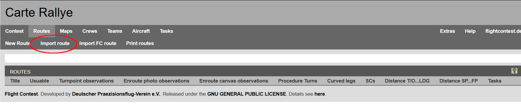 Menu importation d'une route