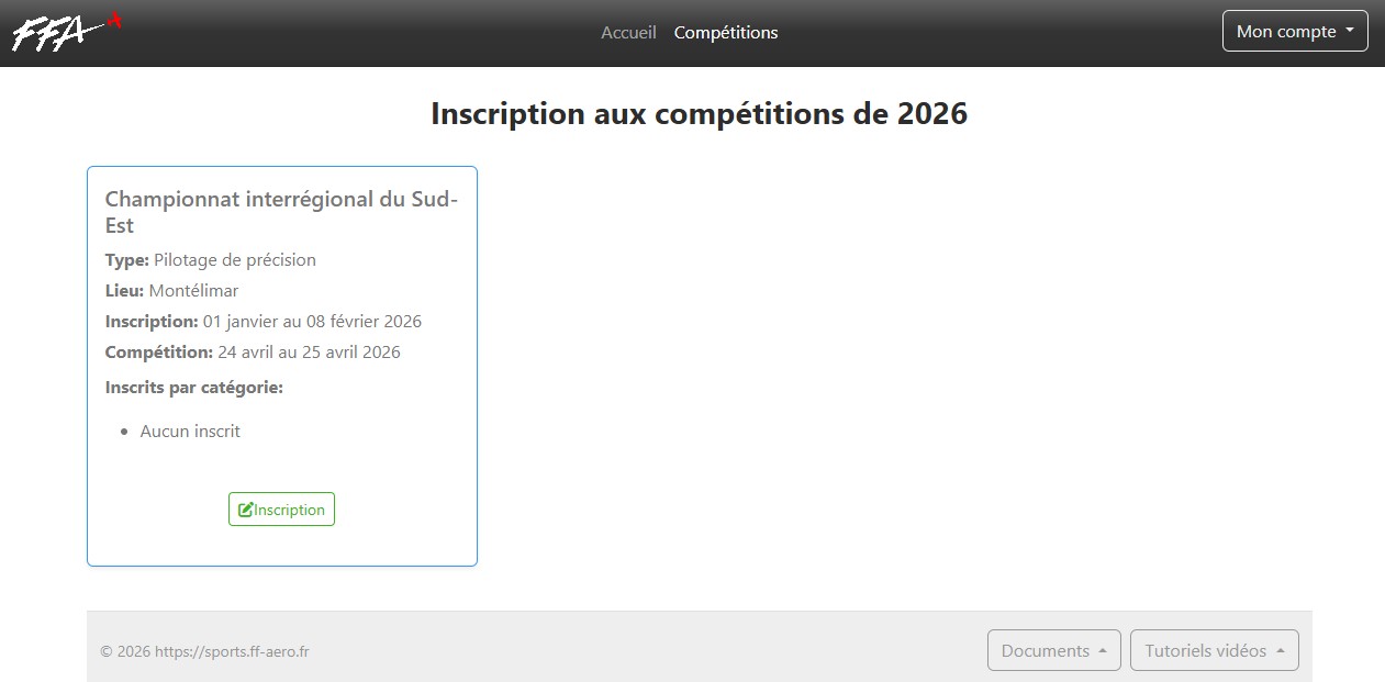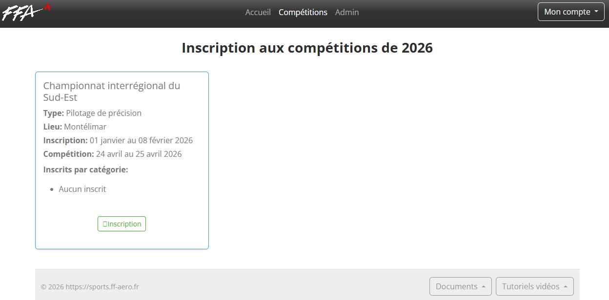 Page Compétitions des concurrents