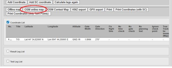 Pour initialiser la zone de la compétition il faut mettre les coordonnées géographique du terrain de la compétition. Dans le menu inférieur sélectionner Add Coordinate