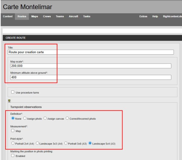 Pour accéder au menu de création d'une nouvelle route il faut préalablement voir créé une Compétition