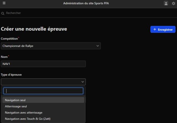 Le champs Competition : ce champs est renseigné avec la compétition sur laquelle vous voulez ajouter une épreuve.