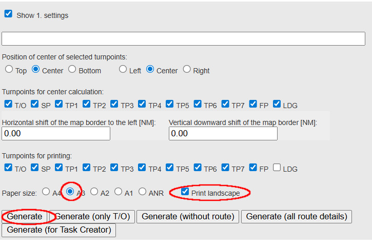 PAramétres pour impression carte final rallye